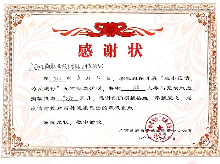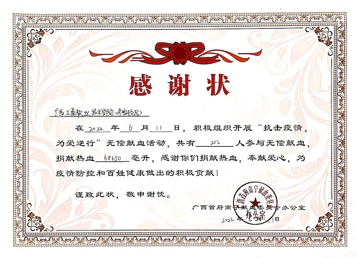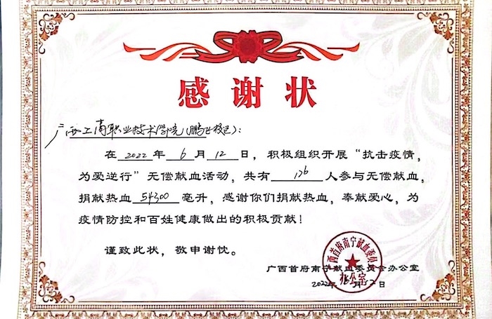 2022年6月10日-12日,学院团委在中尧、武鸣、鹏飞三校区持续开展了无偿献血活动。