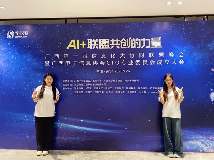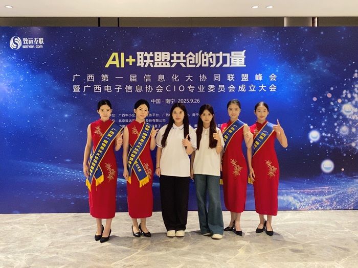近日,我校市场营销协会谢永芳(营销2405班)、谭玉莹(全策2401班)两位同学,应广西布道天下信息产业有限公司邀请,于2025年9月26日赴南宁万豪酒店全程协助“广西第一届信息化大协同联盟峰会暨广西电子信息协会CIO专业委员会成立大会”直播工作,以专业素养为峰会顺利举办提供了有力支持。