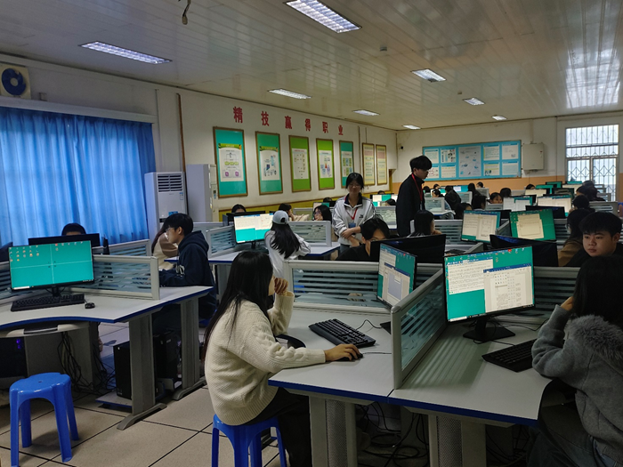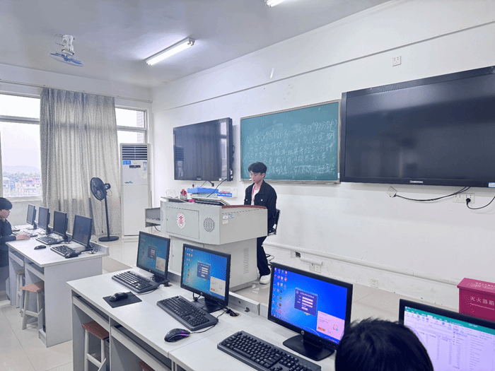 活动伊始,参赛选手有序签到入场,静候比赛开始。比赛过程中,选手们全神贯注,答题氛围紧张而浓厚;工作人员则时刻关注赛场动态,维持着井然的秩序。当有选手遇到电脑故障或程序异常时,工作人员会立即上前排查解决,全力保障比赛顺利完成。活动结束后,工作人员有序清理了场地并合影留念。