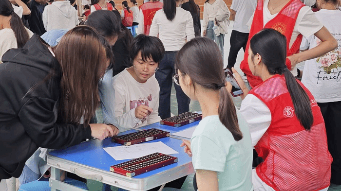 为弘扬中华优秀传统文化,夯实学生专业基础,提升职业技能与综合素养,会计协会于2025年10月28日下午在中尧校区风雨球场组织开展了“承珠算匠心,竞会计‘算’力”职业技能体验活动。活动吸引近200名同学积极参与,在实践体验中感悟专业魅力,在文化传承中培育工匠精神。