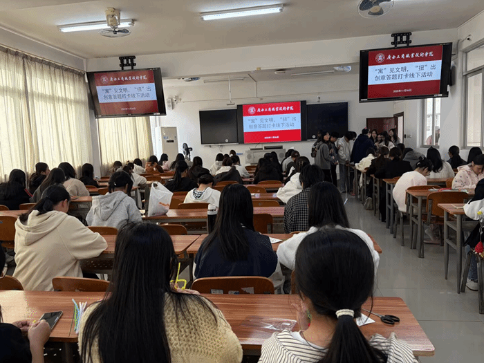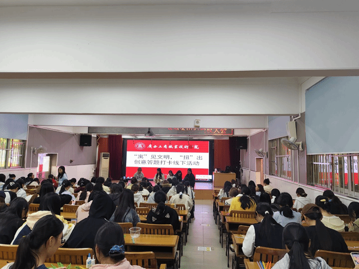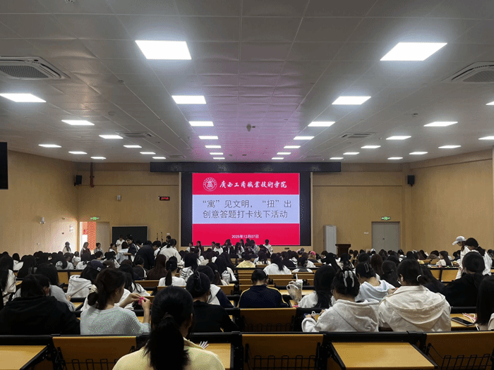 为营造文明和谐、积极创新的宿舍文化氛围,2025年12月6日至7日,大学生自律委员会在鹏飞、中尧、武鸣三大校区同步组织开展了“‘寓’见文明,‘扭’出创意”宿舍文明答题创意打卡活动。活动面向全校学生,累计吸引1050名同学参与,以寓教于乐的形式有效传播了文明理念,提升了宿舍文化建设的内涵与活力。