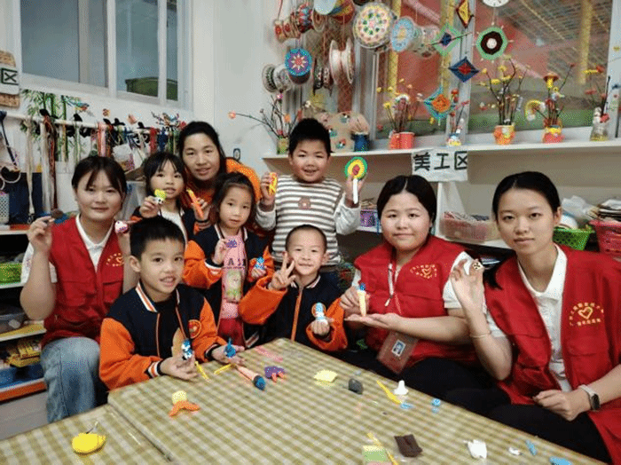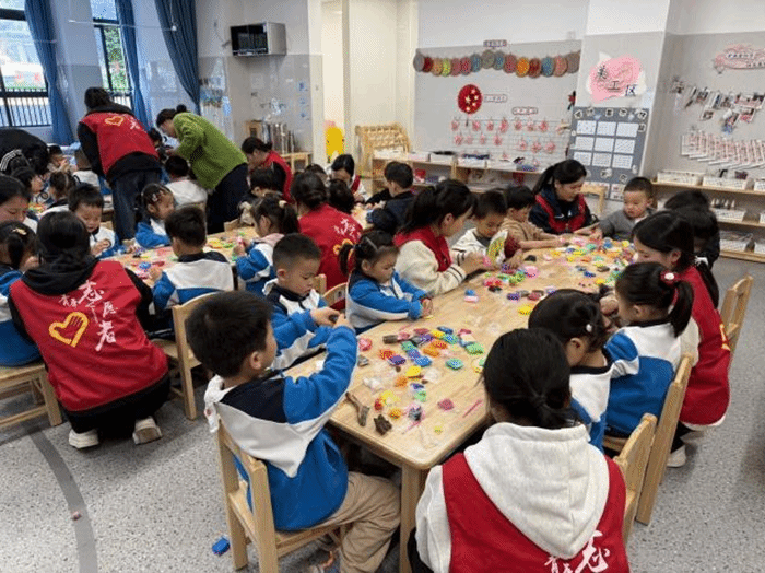 活动尾声,志愿者与孩子们温馨合影,并有序完成场地清扫整理工作。此次主题活动以粘土手工为载体,巧妙地将环保理念与志愿服务精神融入其中,不仅激发了幼儿的创造力和动手能力,更在他们心中播下了绿色生活的种子,为家校社协同育人注入了青春活力,展现了新时代青年的志愿风采。