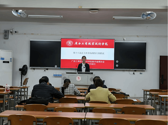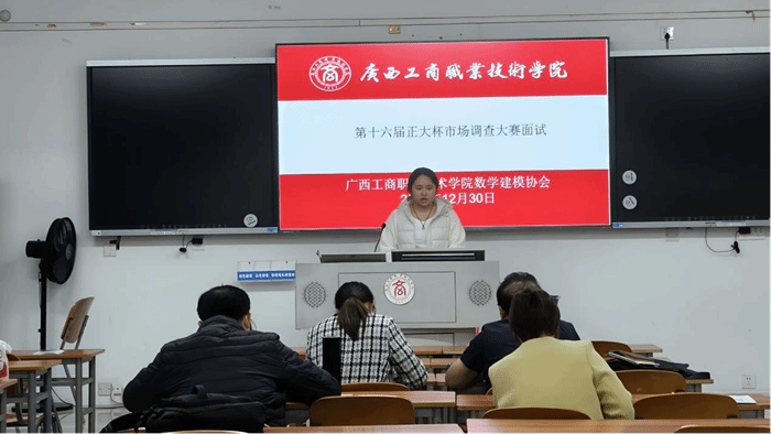 2025年12月30日,广西工商职业技术学院数学建模协会成功举办第十六届“正大杯”全国大学生市场调查与分析大赛校内选拔面试。本次面试采取线上线下相结合的方式,主会场设于鹏飞校区,同时为无法到场的学生开通线上通道,确保选拔工作公平、全面、有序开展。